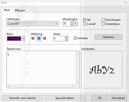 | 1 2 3 4 ************************************** Les 48 Krokus ![]() Gemaakt in PFSX ******************************************************** ![]() ***************************************************************** Zet deze kleuren in je kleurenpalet **************************************************************************** 1. Installeer eerst het lettertype Curlz MT voor je PFSX opent (Staat er misschien al in) 2. Open een nieuw afbeelding 800 bij 600 wit 3. Selectie/ Alles Selecteren 4. Open plaatje 1be28f76bbaaf (krokus in pot)/ Kopiëren 5. Filter/Plug-Inn/ Paste Inside/ OK 6. Filter/ Filter8BF/ Graphics Plus/ Pin Wheel ![]() 7. Filter/ Visueel Effect/ Beweginsonscherpte ![]() 8. Dupliceren/ Horizontaal spiegelen/ dekking 50/ Samenvoegen met vorige laag 9. Laag/ Nieuw/ Leeg/ Automatische transparantie 10. Vul met het vulemmertje de kleur (1) 176/168/192 11. Filter/ PhotoMasque/ ![]() 12. Handmatig instellen X -240 en Y 7 Breedte 688 13. Dupliceren/Horizontaal spiegelen 14. Handmatig instellen / X 358 en Y 7 15. Open plaatje krokus 2 / Kopiëren/ Plakken 16. Handmatig instellen X-52 en Y115 Breedte 516/ Dekking 30 17. Open plaatje Krokus 2 nog een keer/ Kopiëren/ Plakken 18. Handmatig instellen X -29 en Y 169 Breedte 406 19. Open plaatje meisje/ Kopiëren/ Plakken 20. Haal het watermerk weg met het gummetje 21. Handmatig instellen/ X 215 en Y -8 22. Laag/alle lagen samenvoegen 23. Afbeelding / Kader Toevoegen 24. Breedte 1 kleur wit 25. Breedte 50 kleur (2) 207/206/229 26. Breedte 1 kleur wit 27. Breedte 50 kleur (3) 158/116/212 28. Breedte 1 kleur wit 29. Breedte 50 kleur (2) 207/206/229 30. Breedte 1 kleur wit 31. Selecteer de buitenste rand 50 32. Selectie/ Vergroten 51 33. Selectie omgekeerd 34. Filter/ Photo Masque/ kleur (4) 102/109/100/ klik 1x op het zwart witte blokje 35. Filter/ Reliëf/ Reliëf/ Herhaal nog een keer 36. Selectie verbergen 37. Filter stileren/ Toenemende omtrek 38. Selecteer met het toverstafje de lichte paarse rand van 50 (Binnenste ) 39. Filter/ Overig /Rastermaker / Kleur (5) 71/36/119 40. Filter/ Visueel effect/ Beweginsonscherpte 41. Filter/ Stileren/ Toenemende omtrek 42. Zet het werkje even weg 43. Open een nieuwe afbeelding 400 bij 600 transparant 44. Open plaatje Decoxagerate / Kopiëren/ Plakken 45. Vrij aanpassen Schaal 170 46. Klik met de pipet op de kleur van het rondje 47. Selecteer het onderste rondje met het roze rondje 48. Dupliceren/ zet het zo dat het rondje met de E op het roze rondje komt te staan 49. Laag/ Samenvoegen met vorige laag 50. Selecteer met het ovale selectie gereedschap de letter M 51. Delete 52. Doe dat met de andere letters ook, je kan met de pijltjes toetsen de selectie naar de volgende letter laten gaan, doe wel iedere keer daarna Delete 53. Selectie verbergen 54. Ga nu naar het vulemmertje en klik in de rondjes die transparant geworden zijn en vul het met de kleur van het rondje 55. Ga naar het tekst gereedschap kleur (5) 71/36/119 56. Schrijf de letter L en zet het op het bovenste rondje 57. Schrijf de letters e/n/t/e in de andere rondjes 58. (Je kan natuurlijk ook iets anders schrijven) 59. Laag/ Alle lagen samenvoegen 60. Kopiëren 61. Ga terug naar het werkje 62. Plakken zet het aan de linkerkant neer 63. Open plaatje vogel/ Kopiëren/ Plakken/ Gum het watermerk weg 64. Vrij aanpassen Schaal 45 gum iets van de witte stok aan de voorkant weg 65. Klik rechts op plaatje/ Opties/ Slagschaduw/ Plaats rechtsonder. 66. Zet je naam op het werkje 67. Laag/ Alle lagen samenvoegen 68. Afbeelding/ Afmetingen Afbeelding/ Breedte 800 Veel plezier met het maken van het lesje Geschreven door Ada van Buren 5 Maart 2020 ![]() Variatie van Gerkje *************************************** 1 2 3 4 | |||||||||||||
