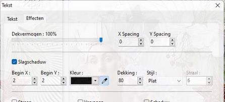 | 1 2 3 4 ************************************** Noël en Dentelle ![]() Gemaakt met PFS X ******************************** Gebruikte filters 8bf: Er zijn géén filters 8bf gebruikt in deze les. *********************************************************************** ![]() ************************** Ik wil Riet bedanken voor het controleren van de les! **************************************************************** Zet onderstaande kleur in je Aangepaste kleurenpalet: ![]() ************************************************************* Installeer, voor dat je het programma opent eerst het font Fireworks! 1. Open de afbeelding Fractal. 2. Laag/ Nieuw/ Leeg/ voorgrondkleur. 3. Zet de Mengmodus op Overlay. 4. Open de tube Tak. 5. Kopieer de tube en plak deze op je werk. 6. Plaats de tube naar links, zie voorbeeld. 7. Open de tube Paysage. 8. Kopieer de tube en plak deze op je werk. 9. Plaats de tube naar links onder, zie voorbeeld. 10. Klik op de laag van de tak en wis met het gummetje de onderkant er van. 11. Open de tube deco kerstboom. 12. Kopieer de tube en plak deze op je werk. 13. Klik rechts op de laag/ Vrij aanpassen/ schaal op 40%. 14. Hang de deco kerstboom aan de tak , zie voorbeeld. 15. Laag/ dupliceren. 16. Klik rechts op de laag/ Vrij aanpassen/ schaal op 40%. 17. Plaats de boom boven in de tak zie voorbeeld. 18. Laag/ dupliceren. 19. Plaats deze boom onder links in de tak, zie voorbeeld. 20. Voeg de 3 lagen van de bomen samen. 21. Dubbelklik op de laag/ Slagschaduw: ![]() 22. Filter/ Verscherpen/ Meer verscherpen: ![]() 23. Open de tube vrouw. 24. Kopieer de tube en plak deze op je werk. 25. Selecteer de handtekening en klik op de Deletetoets. 26. Dubbelklik op de laag/ Slagschaduw: ![]() 27. Open de tube deco tak. 28. Kopieer de tube en plak deze op je werk. 29. Laag/ Handmatig instellen: X = 491 en Y = -65. 30. Open de tube deco bloem. 31. Kopieer de tube en plak deze op je werk. 32. Laag/ Handmatig instellen: X = 513 en Y = 11/ Breedte = 218. 33. Voeg de laag samen met de vorige laag. 34. Dubbelklik op de laag/ Slagschaduw: ![]() 35. Open de tube bessen. 36. Kopieer de tube en plak deze op laag 5 de laag van de vrouw.. 37. Klik rechts op de laag/ Vrij aanpassen/ Hoek = 68,50. 38. Laag/ Handmatig instellen/ X = 482 en Y = -123/ Breedte = 310. 39. Wis voorzichtig de aangegeven besjes weg: ![]() 40. Klik op de laag er boven en wis over de bessentak het mistige laagje weg. 41. Open de tube deco ster. 42. Kopieer de tube en plak deze op de laag van de vrouw. 43. Laag/ Handmatig instellen: X = 626 en Y = 138/ Breedte = 100. 44. Filter/ Verscherpen/ Meer verscherpen, zie punt 22. 45. Klik op het Tekstgereedschap en decoreer je werk met enkele decoraties van het font Fireworks/ tekstgrootte 48 of 60. ![]() ![]() 46. Maak de deco`s zoals jij het mooi vind, speel met tekst converteren en schaduw. 47. Voeg hierna alle lagen samen. 48. Bewerken/ Kopiëren. 49. Open de tube Kader. 50. Bewerken/ Plakken. 51. Klik op de achtergrond, het kader. 52. Klik op de kleur zwart en klik op het emmertje. 53. Klik naast het kader om de transparante buitenkant te vullen. 54. Wil je dit niet, sla dan je werk op als PNG afbeelding. 55. Zet je naam op het werk en voeg de lagen samen. Veel plezier met dit door mij vertaalde werkje van Elegante. Merci Elegante! *************************************** 1 2 3 4 | |||||||||||||