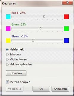 | 1 2 3 4 ************************************** Memory`s Gemaakt met PhotoFiltreStudioX 10.10.1 ************************************************************** Gebruikte filters 8bf: Unlimited/ VM Natural/ Legoland (importeren) Unlimited: Edge Square/ Sqaure Edge 13 Graphics Pluss/ Cross Shadow en Emboss AAA Frames/ Foto Frame ************************************* ![]() **************************************************************** Ik bedank Riet en Ans voor het controleren van de les *************************************************************** Zet onderstaande kleuren in je Aangepaste kleurenpalet: ![]() ************************************************************* 1. Open een nieuwe afbeelding van 800 x 600. 2. Selectie/ Alles selecteren. 3. Open bonus_angels_kit_Paper_3 4. Bewerken/ Kopiëren. 5. Sluit de afbeelding. 6. Filter/ Plugin/ Paste inside/ meteen OK. 7. Selectie/ Verbergen. 8. Filter/ Textuur/ Zebrahuid. 9. Filter/ Reliëf/ Reliëf. 10. Selectie/ Handmatig instellen: Zet de instellingen zoals je op de pr.screen ziet en pas dan een vinkje voor Hoogte/breedteverhouding beh.. ![]() 11. Laag/ Nieuw/ leeg/ achtergrondkleur. Alleen binnen de selectie krijg je de nieuwe laag. 12. Laat de selectie nog even staan! Als deze er niet meer staat, dan Selectie/ Selectie tonen. 13. Filter 8bf/ Unlimited/ Edge Square/ Sqaure Edge 13: ![]() 14. Filter/ Textuur/ Zandsteen. 15. Filter 8bf/ Graphics Pluss/ Cross Shadow: ![]() 16. Selectie/ Verbergen. 17. Klik rechts op de achtergrond/ Dupliceren. 18. Klik op Laag 1, de bovenste laag. 19. Selectie/ Selecteer laag. 20. Klik op Laag 2, de gedupliceerde achtergrond/ Klik op Delete. 21. Je hebt nu dit: ![]() 22. Je blijft op Laag 2/ Dubbelklikken/ Slagschaduw: ![]() 23. Schaduw samenvoegen. 24. Herhaal de schaduw, maar dan X en Y -7. 25. Schaduw samenvoegen. 26. Laag/ Volgorde/ Plaats naar voorgrond. 27. De lagen staan nu zo: ![]() 28. Klik op laag 1. 29. Open de tube "lindsay_SnowedUnder_smalnotes. 30. Aanpassen/ Kleurbalans: ![]() 31. Kopieer de tube en plak deze op laag 1. 32. Dubbelklik op de laag/ Slagschaduw: ![]() 33. Schaduw samenvoegen. 34. Herhaal de schaduw, maar nu X en Y -3. 35. Filter 8bf/ Unlimited/ VM Natural/ Legoland: ![]() 36. Open de tube Frames_Les 25. 37. Filter/ Kleuren/ Gekleurde laag: 38. Kopieer de tube en plak deze op je werk. 39. Laag/ Handmatig instellen/ Haal het vinkje weg bij Hoogte/breedte verhouding/ Breedte op 700 en Hoogte op 500. 40. Laag/ Handmatig instellen: X = 40 en Y = 45. 41. Open de tube Kadervulling. 42. Kopieer de tube en plak deze op je werk. 43. Filter/ stileren/ Toenemende omtrek: ![]() 44. Laag/ Alle lagen samenvoegen. 45. Open de tube Betsie 591-12--01-2011. 46. Kopieer de tube en plak deze op je werk. 47. Laag/ Vervormen/ Horizontaal spiegelen. 48. Plaats de tube rechts onder. Zie voorbeeld. 49. Dubbelklik op de laag/ slagschaduw: ![]() 50. Voeg de lagen samen. 51. Afbeelding/ Kader toevoegen/ Breed 3/ voorgrondkleur. 52. Afbeelding/ Kader toevoegen/ Breed/ 2 achtergrondkleur. 53. Afbeelding/ Kader toevoegen/ Breed 3/ voorgrondkleur. 54. Afbeelding/ Kader toevoegen/ Breed 50/ wit. 55. Selecteer met de toverstaf de witte rand. 56. Open het plaatje Textuur/ Bewerken/ Patroon selecteren. 57. Ga terug naar je werk/ Bewerken/ Vullen met patroon. 58. Filter/ Artistiek/ Spuitbus/ 15 pixels. 59. Filter 8bf/ Graphics Pluss/ Cross Shadow/ Intesety op 45: ![]() 60. Selectie omgekeerd. 61. Filter/ Stileren/ Toenemende omtrek: ![]() 62. Selectie/ Verbergen. 63. Selectie/ Alles selecteren. 64. Selectie/ Verkleinen/ 30. 65. Selectie/ Kader selectie/ 10. 66. Filter 8bf/ AAA Frames/ Foto Frame: ![]() 67. Selectie/ Verbergen. 68. Herhaal filter 8bf/ AAA Frames/ Fotoframe. 69. Zet je naam op het werk en voeg de lagen weer samen. 70. Afbeelding/ Afmetingen afbeelding/ 800 breed. Veel plezier met het maken van dit werkje. © Gerkje *************************************** 1 2 3 4 | |||||||||||||