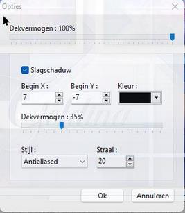 | 1 2 3 ************************************** Goldina ![]() Gemaakt met PFS X ******************************** Gebruikte filters 8bf: Unlimited: Graphics Plus/ Quick Tile II VM Instant Art/ Tripolis &Bkg Kaleidoscope/ @BlueBerry Pie Andere filters 8bf: VanDerLee/ Unplugged-X *********************************************************************** ![]() ************************** Ik wil Riet bedanken voor het controleren van de les! **************************************************************** Voor je het programma opend eerst het gradient kopiëren en in de map Plugins/ Degrade van Photo Filtre Studio plakken: ********************************************************* Zet onderstaande kleuren in je Aangepaste kleurenpalet: Zet wit op de voorgrond en blauw op de achtergrond: ************************************************************* 1. Open de afbeelding @ildikokjk_feladat_goldina_deko_1. 2. Afbeelding/ Dupliceren en het origineel sluiten. 3. Filter 8bf/ Unlimited/ Graphics Plus/ Quick Tile II: ![]() 4. Filter 8bf/ Unlimited/ VM Instart Art/ Tripolis: ![]() 5. Filter 8bf/ Unlimited/ &Bkg Kaleidoscope/ @BleuBerry Pie: ![]() 6. Filter 8bf/ VanDerLee/ Unplugged-X/ Defocus: ![]() 7. Filter/ Verscherpen/ Meer verscherpen: ![]() 8. Laag/ Nieuw/ Leeg/ wit. 9. Filter/ Plugin/ Gradient/ Laad het opgeslagen gradient: ![]() 10. Filter/ PhotoMask: ![]() 11. Zet de Mengmodus op Overlay. 12. Open de tube @ildikokjk_feladat_goldina_deko_2. 13. Kopieer de tube en plak deze op je werk. 14. Laag/ Handmatig instellen: X = -9 en Y = 43. 15. Zet de Mengmodus op Overlay. 16. Laag/ Nieuw/ Leeg/ wit. 17. Filter/ PhotoMask: ![]() 18. Dubbelklik op de laag/ Slagschaduw: 19. Zet de Mengmodus op Helderheid. 20. Laag/ Dupliceren. 21. Zet de Mengmodus op Soft Light. 22. Het ziet er nu zo uit: ![]() 23. Laag/ Alle lagen samenvoegen. 24. Laag/ Dupliceren. 25. Filter/ PhotoMask: ![]() 26. Open de tube @ildikokjk_feladat_goldina_deko_3. 27. Kopieer de tube en plak deze op je werk. 28. Laag/ Samenvoegen met vorige laag. 29. Laag/ Nieuw/ Leeg/ wit. 30. Filter/ PhotoMask: ![]() 31. Het ziet er nu zo uit: ![]() 32. Dubbelklik op de laag/ Slagschaduw: ![]() 33. Klik rechts op laag 1/ Order/ Bring to front. 34. Laag/ Handmatig instellen: X = 167 en Y = 119/ Breedte = 354. 35. Laag/ Dupliceren. 36. Handmatig instellen: X = 393 en Y = 119. 37. Laag/ Dupliceren. 38. Handmatig instellen: X = 618 en Y = 119. 39. Nu ziet het er zo uit: ![]() 40. Open de tube @ildikokjk_feledat_goldina_deko_4. 41. Kopieer de tube en plak deze op je werk. 42. Handmatig instellen: X = 444 en Y = 298. 43. Dubbelklik op de laag/ Slagschaduw: ![]() 44. Open de tube @ildikokjk_feladat_goldina_divatkep. 45. Kopieer de tube en plak deze op je werk. 46. Handmatig instellen: X = 71 en Y = 31. 47. Dubbelklik op de laag/ Slagschaduw: ![]() 48. Laag/ Alle lagen samenvoegen. 49. Afbeelding/ Kader toevoegen: Breedte 1/ kleur wit breedte 3 kleur 2 breedte 1/ kleur wit 50. Zet je naam op het werk en voeg de lagen samen. Veel plezier met dit door mij vertaalde lesje van Ildiko. Bedankt Ildiko! *************************************** 1 2 3 | |||||||||||||