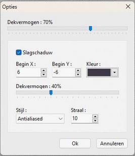| 1 2 3 ************************************** Klotild Gemaakt met PFS X ******************************** Gebruikte filters 8bf: Geen filters 8bf gebruikt *********************************************************************** ![]() ************************** Ik wil Riet bedanken voor het controleren van de les! **************************************************************** Zet onderstaande kleuren in je Aangepaste kleurenpalet: ************************************************************* 1. Open een nieuwe afbeelding van 900 x 500/ kleur 1. 2. Laag/ Nieuw/ Open als laag/ ildiko _klotild_pfs_deco_1. 3. Laag/ Nieuw/ Open als laag/ ildiko _klotild_pfs_deco_2. 4. Laag/ Nieuw/ Open als laag/ ildiko _klotild_pfs_deco_3. 5. Zet de Dekking op 50. 6. Je afbeelding ziet er nu zo uit: ![]() 7. Laag/ Nieuw/ Open als laag/ildiko_klotild_pfs_woman_1. 8. Laag/ Handmatig instellen/ Automatisch/ rechts onder. 9. Zet de Dekking op 50. 10. Laag/ Nieuw/ Open als laag/ ildiko_klotild_pfs_deco_4. 11. Laag/ Nieuw/ Open als laag/ ildiko_klotild_pfs_deco_5. 12. Zet de Dekking op 70. 13. Dubbelklik op de laag/ Slagschaduw/ kleur 3: ![]() 14. Laag/ Nieuw/ Open als laag/ildiko_klotild_pfs_woman_2. 15. Laag/ Nieuw/ Open als laag/ildiko_klotild_pfs_deco_6. 16. Dubbelklik op de laag/ Slagschaduw/ kleur 3: ![]() 17. Laag/ Nieuw/ Open als laag/ ildiko_verzio3_signo. 18. Handmatig instellen/ Automatisch/ rechts onder. 19. Laag/ Alle lagen samenvoegen. 20. Filter/ Kader/ Simpel kader: ![]() 21. Afbeelding/ Kader toevoegen: breedte 12/kleur 1 breedte 6/ kleur 2 breedte 12/ kleur 1 22. Zet je naam op het werk en voeg de lagen samen. Veel plezier met dit door mij vertaalde lesje van Ildiko. Bedankt Ildiko! *************************************** 1 2 3 | |||||||||||||