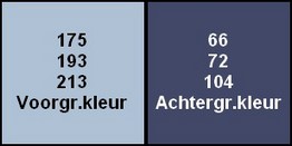 | 1 2 3 ************************************** Winter 2 Gemaakt met PFS X ******************************** Gebruikte filters 8bf: Unlimited: Paper Textures/ Japanese Paper AFS IMPORT/ sqborder2 Andere filters 8bf: Mehdi/ Sorting Tiles *********************************************************************** ![]() ************************** Ik wil Riet bedanken voor het controleren van de les! **************************************************************** Zet onderstaande kleuren in je Aangepaste kleurenpalet: ![]() ************************************************************* 1. Open ildiko_winter_version_2_background. 2. Filter 8bf/ Mehdi/ Sorting Tiles: ![]() 3. Filter/ Verscherpen/ Meer verscherpen: ![]() 4. Laag/ Dupliceren. 5. Filter/ PhotoMask: ![]() 6. Filter 8bf/ Unlimited/ Paper Textures/ Japanese Paper: ![]() 7. Laag/ Nieuw/ Open als laag/ ildiko_winter_version_2_deco. 8. Zet de Mengmodus op Overlay. 9. Laag/ Nieuw/ Open als laag/ ildiko_winter_version_2_landscape. 10. Zet de Dekking op 80%. 11. Zoe ziet het er nu uit: ![]() 12. Laag/ Alle lagen samenvoegen. 13. Laag/ Dupliceren. 14. Laag/ Dupliceren. 15. Klik op de middelste laag: ![]() 16. Filter 8bf/ Unlimited/ AFS IMPORT/ sqborder2: ![]() 17. Klik rechts op de bovenste laag/ Vrij aanpassen/ Schaal = 80%. 18. Filter/ Stileren/ Toenemende omtrek/ achtergrondklleur: ![]() 19. Selectie/ Verbergen. 20. Laag/ Samenvoegen met vorige laag. 21. Klik rechts op de laag/ Vrij aanpassen/ Hoek = 34,00. 22. Laag/ Handmatig instellen: X = -279 en Y = -454. 23. Dubbelklik op de laag/ Slagschaduw/ achtergrondkleur: ![]() 24. Zo ziet je afbeelding er nu uit: ![]() 25. Laag/ Nieuw/ Open als laag/ ildiko_winter_version_2_snowflake. 26. Zet de Mengmodus op Bleken. 27. Laag/ Nieuw/ Open als laag/ ildiko_winter_version_2_text_dark.. 28. Handmatig instellen: X = 541 en Y = 351. 29. Dubbelklik op de laag/ Slagschaduw/ achtergrondkleur: ![]() 30. Laag/ Nieuw/ Open als laag/ ildiko_winter_version_2_text_clear. 31. Handmatig instellen: X = 572 en Y = 371. 32. Dubbelklik op de laag/ Slagschaduw/ als punt 29. 33. Laag/ Nieuw/ Open als laag/ ildiko_winter_version_2_sphere. 34. Handmatig instellen: X = 506 en Y = 143. 35. Laag/ Nieuw/ Open als laag/ ildiko_winter_version_2_women. 36. Handmatig instellen: X = 74 en Y = 94. 37. Dubbelklik op de laag/ Slagschaduw/ achtergrondkleur: ![]() 38. Laag/ Nieuw/ Open als laag/ ildiko_verzio3_signo. 39. Handmatig instellen/ Automatisch rechts midden. 40. Laag/ Alle lagen samenvoegen. 41. Filter/ Kader/ Simpel kader/ achtergrondkleur: ![]() 42. Afbeelding/ Kader toevoegen/ breedte 20/ voorgrondkleur. 43. Selecteer het kader van 20 met de toverstaf. 44. Filter 8bf/ Unlimited/ AFS IMPORT/ sqborder2: ![]() 45. Selectie/ Verbergen. 46. Zet je naam op het werk en voeg de lagen samen. Veel plezier met dit door mij vertaalde lesje van Ildiko. Bedankt Ildiko! *************************************** 1 2 3 | |||||||||||||