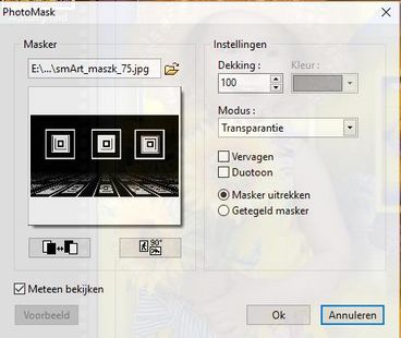 1 2 3 4 5 ************************************ ALYSON ![]() Gemaakt met PFS X 10.10.1 ******************************** Gebruikte filters 8bf: Importeren naar Unlimited: Simple/ Diamonds Mock/ Bevel Andere filters 8bf: Mehdi/ Wavy Lab 1.1 Simple/ Quick Tile AP Line/ Lines-Silverlining AAA Frames/ Foto Frame *********************************************************************** ![]() ************************** Ik wil Riet bedanken voor het controleren van de les! **************************************************************** Zet onderstaande kleuren in je Aangepaste kleurenpalet: ![]() + de kleur wit. ******************************************************************* 1. Open een nieuwe afbeelding van 650 x 450/ wit. 2. Filter 8bf/ mehdi/ Wavy Lab 1.1: ![]() 3. Filter 8bf/ Unlimited/ Simple/ Diamonds: ![]() 4. Filter/ Relief/ Relief. 5. Filter 8bf/ Simple/ Quick Tile: ![]() 6. Laag/ Dupliceren. 7. Filter 8bf/ Unlimited/ Mock/ Bevel: ![]() 8. Zet de Mengmodus op Hard light. 9. Voeg de lagen samen. 10. Laag/ Dupliceren. 11. Selectie/ Selectievorm laden/ laad de vorm S.Alyson.01. 12. Bewerken/ Wissen. 13. Selecteie verbergen. 14. Filter 8bf/ Ap Line/ Silverling: Grid Paper/ Gap 5/ Color(R) alle 3 op 255: ![]() 15. Filter/ relief/ Relief. 16. Filter/ Stileren/ Toenemende omtrek: ![]() 17. Voeg de lagen samen. 18. Filter 8bf/ Simple/ Quick Tile: 19. Laag/ Nieuw/ Leeg/ wit. 20. Selectie/ Selectie vorm laden/ Laad de vorm S.Alyson.02. 21. Bewerken/ Wissen. 22. Zet de Mengmodus op Soft light. 23. Dubbelklik op de laag/ Slagschaduw: 24. Voeg alle lagen samen. 25. Filter 8bf/ Simple/ Quick Tile: ![]() 26. Open de tube Paysage01. 27. Kopieer de tube en plak deze op je werk. 28. Bewerken/ Kopie samen gevoegd. 29. Bewerken/ Plakken. 30. Klik rechts op de samengevoegde laag/ klik op zichtbaar. 31. Je hebt nu dit: ![]() 32. Klik op laag 1. 33. Zet de Dekking van deze laag op 70. 34. Laag/ Nieuw/ Leeg/ voorgrondkleur. 35. Filter/ PhotoMask: ![]() 36. Selectie/ Selectie vorm laden/ laad de vorm S.Alyson.03. 37. Selectie/ Omgekeerd. 38. Bewerken/ Wissen. 39. Selectie/ verbergen. 40. Aanpassen/ Gammacorrectie/ niveau 3.00. 41. Laag/ Dupliceren. 42. Klik rechts op laag 4/ Samenvoegen met vorige laag. 43. Dubbelklik op de laag/ Slagschaduw: ![]() 44. Klik rechts op de laag/ Order/ Bring to front. 45. Klik rechts op laag 2/ klik op Zichtbaar. 46. Laag/ Handmatig instellen/ haal het vinkje weg bij Hoogte/breedte verhouding: Breedte = 120 en Hoogte = 147. 47. Plaats de laag achter het eerste kader van het masker. 48. Laag/ Dupliceren/ 2 x. 49. Plaats deze lagen achter de andere twee kaders van het masker. 50. Open de tube deco glass. 51. Kopieer de tube en plak deze op de bovenste laag. 52. Voeg alle lagen samen. 53. Afbeelding/ Kader toevoegen: breedte 2/ voorgrondkleur breedte 5/ Achtergrondkleur breedte 2/ voorgrondkleur breedte 45/ kleur wit. 54. Selecteer met de toverstaf de witte rand. 55. Filter 8bf/ Mehdi/ Wavy Lab 1.1: 56. Selectie/ Omgekeerd. 57. Filter/ Stileren/ Toenemende omtrek: 58. Selectie/ Verbergen. 59. Filter 8bf/ AAA Frames/ Foto Frame: ![]() 60. Open de tube van het meisje met de zonnebloemen. 61. Haal de handtekening weg met het gummetje. 62. Kopieer de tube en plak deze op je werk. 63. Plaats het meisje links, zie voorbeeld. 64. Dubbelklik op de laag/ Slagschaduw: ![]() 65. Open de tube Vaso4_byClo. 66. Afbeelding/ Afmetingen afbeelding: Hoogte = 274. 67. Verwijder de handtekening. 68. Kopieer de tube en plak deze op je werk. 69. Plaats de tube rechts onder zoals op het voorbeeld. 70. Geef een zelfde schaduw als de vrouw. 71. Voeg de lagen samen. 72. Afbeelding/ Kader toevoegen/ Breedte 1. Kleur zwart. 73. Zet je naam op het werk en voeg de lagen samen. Veel plezier met het maken van deze door mij vertaalde les van manany. Merci Manany! *************************************** 1 2 3 4 5 | |||||||||||||