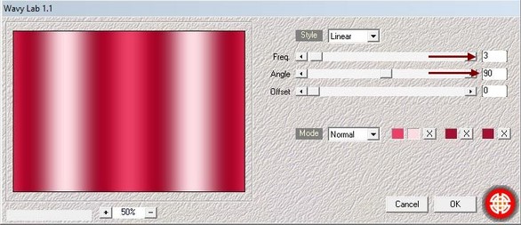 1 2 3 4 5 ************************************ BERENICE ![]() Gemaakt met PFS X ******************************** Gebruikte filters 8bf: Importeren naar Unlimited: Paper Textures/ Canvas, Fine Toadies/ What Are You? Simple/ Horizontal Grain Graphics Plus/ Cross Shadow Buttons & Frames/ Gradient Frame Andere filters 8bf: Mehdi/ Wavy Lab 1.1 Mehdi/ Sorting Tiles Dsb flux/ Linear Transmission *************************************************************** ![]() ************************************* Ik wil Riet bedanken voor het controleren van de les! ************************************************************* Zet onderstaande kleuren in je Aangepaste kleurenpalet: ![]() ********************************************************** 1. Open een nieuwe afbeelding van 650 x 450/ wit. 2. Filter 8bf/ Mehdi/ Wavy lab 1.1: ![]() 3. Filter 8bf/ Mehdi/ Sorting Tiles: ![]() 4. Laag/ Dupliceren. 5. Zet de mengmodus op Bleken. 6. Voeg de lagen samen. 7. Laag/ Dupliceren. 8. Selectie/ Selectie vorm laden/ laad de vorm S.Berenice.01. 9. Bewerken/ Wissen. 10. Selectie / Verbergen. 11. Filter 8bd/ dsb flux/ Linear Transmission: ![]() 12. Filter 8bf/ Unlimited/ Paper Textures/ Canvas, Fine: ![]() 13. Dubbelklik op de laag/ Slagschaduw: ![]() 14. Klik rechts op de achtergrond/ Dupliceren. 15. Selectie/ Selectie vorm laden/ laad de vorm S.Berenice.02. 16. Bewerken/ Wissen. 17. Selectie/ Selecteer laag. 18. Selectie/ Verkleinen/ 8. 19. Filter/ Stilleren/ Toenemende omtrek: ![]() 20. Filter 8bf/ Unlimited/ Paper Textures/ Canvas, Fine: ![]() 21. Selectie/ Verbergen. 22. Filter 8bf/ Unlimited/ Toadies/ What Are You?: ![]() 23. Filter/ Relief/ Relief. 24. Laag/ Dupliceren. 25. Laag/ Vervormen/ Horizontaal spiegelen. 26. Laag/ Samenvoegen met vorige laag. 27. Dubbelklik op de laag/ Slagschaduw: ![]() 28. Klik rechts op de laag/ Schaduw samenvoegen. 29. Herhaal de schaduw, maar dan X en Y = -7. 30. Klik rechts op de achtergrond/ Dupliceren. 31. Filter 8bf/ Unlimited/ Simple/ Horizontal Grain: ![]() 32. Laag/ Alle lagen samenvoegen. 33. Zet kleur 3 op de voorgrond. 34. Laag/ Nieuw/ Leeg/ kleur 3. 35. Selectie/ Selectie vorm laden/ laad de vorm S.Berenice.03. 36. Bewerken/ Wissen. 37. Selectie/ Selecteer laag. 38. Selectie/ Verkleinen/ 15. 39. Vul de geselecteerde vierkantjes met de achtergrondkleur. 40. Filter 8bf/ Unlimited/ Graphics Plus/ Cross Shadow: ![]() 41. Filter/ Stileren/ Toenemende omtrek: ![]() 42. Selectie verbergen. 43. Filter/ Stileren/ Toenemende omtrek: 44. Selectie verbergen. 45. Voeg alle lagen samen. 46. Bewerken/ Patroon selecteren. 47. Afbeelding/ Kader toevoegen: breedte 2/ voorgrondkleur breedte 2/ achtergrondkleur breedte 2/ voorgrondkleur breedte 45/ wit 48. Selecteer met de toverstaf het witte kader. 49. Bewerken/ Vullen met patroon. 50. Filter/ Visueel effect/ Gaussiaanse vervaging/ 30. 51. Selectie/ Omgekeerd. 52. Filter/ Stileren/ Toenemende omtrek: ![]() 53. Selectie/ Verbergen. 54. Filter 8bf/ Unlimited/ Buttons & Frames/ Gradient Frame: Kies Gradient 66 en klik daarna op Select en Dan op Apply: ![]() ![]() 55. Open de tube deco Glass. 56. Kopieer de tube en plak deze op je werk. 57. Schuif met de pijltjestoets de tube naar rechts over de kleine vierkantjes, zie voorbeeld. 58. Open de tube 3432-woman. 59. Kopieer de tube en plak deze op je werk. 60. Haal de handtekening weg met het gummetje. 61. Plaats de tube zoals je ziet op het voorbeeld. 62. Dubbelklik op de laag/ Slagschaduw: 63. Open de tekst tube. 64. Kopieer de tekst en plak deze op je werk. 65. Plaats de tube zoals je ziet op het voorbeeld. 66. Dubbelklik op de laag/ Slagschaduw: ![]() 67. Laag alle lagen samenvoegen. 68. Afbeelding/ kader toevoegen/ Breedte 1/ kleur zwart. 69. Zet je naam op het werk en voeg de lagen weer samen. Veel plezier met het maken van deze door mij vertaalde les van manany. Merci Manany! *************************************** 1 2 3 4 5 | |||||||||||||