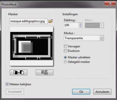 1 2 3 4 5 ************************************ Capucine ![]() Gemaakt met PFS X 10.10.1 ******************************************* Gebruikte filters 8bf: Importeren naar Unlimited: Toadies/ What Are You? AFS IMPORT/ sqborder2 Andere filters 8bf: Simple/ Quick Tile Photoshop Fun II /kylie (zit in de map met materialen) AAA Frames/ Foto Frame ****************************** ![]() ************************* Met dank aan Riet en Joke voor het controleren van de les. ************************************************************** Zet onderstaande kleuren in je aangepaste kleurenpalet: ![]() ******************************************************* Zet eerst het filter 8bf in je uitgepakte filtermap voordat je het programma opent!! 1. Open een nieuwe afbeelding van 650 x 450/ voorgrondkleur. 2. Open de tube AS0021. 3. Haal de handtekening weg. 4. Kopieer de tube en plak deze op je werk. 5. Handmatig instellen/ Haal het vinkje weg bij Hoogte/breedte verhouding/ Breedte 650 en hoogte 450. 6. Voeg de lagen samen. 7. Filter 8bf/ Simple/ Quick Tile: ![]() 8. Filter/ Visueel effect/ Gaussiaanse vervaging/ 50. 9. Laag/ Dupliceren. 10. Filter 8bf/ Photoshop Fun II/ Kylie: ![]() 11. Filter/ Stileren/ Toenemende omtrek: ![]() 12. Selectie/ Verbergen. 13. Filter 8bf/ Unlimited/ Toadies/ What Are You?: ![]() 14. Zet de Mengmodus op Soft Light. 15. Filter/ Relief/ Relief. 16. Bewerken/ Herhalen Relief. 17. Voeg de lagen samen. 18. Filter 8bf/ Unlimited/ AFS IMPORT/ sqborder2: ![]() 19. Filter 8bf/ Simple/ Quick Tile: 20. Filter/ Relief/ Relief. 21. Laag/ Dupliceren. 22. Selectie/ Selectie vorm laden/ laad de vorm S.Capucine.01. 23. Bewerken/ Knippen. 24. Selectie/ Selecteer laag. 25. Filter 8bf/ AAA Frames/ Foto Frame: ![]() 26. Selectie/ Verbergen. 27. Klik rechts op de achtergrond/ Dupliceren. 28. Selectie/ Selectie vorm laden/ laad de vorm S.Capucine.02. 29. Bewerken/ Knippen. 30. Selectie/ Selecteer laag. 31. Herhaal het filter van punt 25. 32. Selectie/ Verbergen. 33. Herhaal punt 27 t/m 32 met de selectie vormen S.Capucine.03 en S. Capucine.04. 34. Voeg de lagen 1 voor 1 samen, behalve met de achtergrond! 35. Je hebt nu de achtergrond en laag 4: ![]() 36. Klik op de achtergrond/ 37. Laag/ Nieuw/ leeg/ voorgrondkleur. 38. Filter/ PhotoMask: ![]() 39. Selectie/ Selectie vorm laden/ laad de vorm S.capucine.05. 40. Selectie/ Omgekeerd. 41. Bewerken/ Knippen. 42. Selectie/ Verbergen. 43. Dubbelklik op de laag/ Slagschaduw: ![]() 44. Schaduw samenvoegen. 45. Herhaal de schaduw, maar dan X en Y = -7. 46. Zet de Mengmodus op Helderheid. 47. Open de tube Misted paysage. 48. Verwijder de handtekening met het gummetje. 49. Afbeelding/ Afmetingen afbeelding/ Hoogte = 263. 50. Kopieer de tube en plak deze op de achtergrond van je werk. 51. Plaats de tube zoals je ziet op het voorbeeld. 52. Klik op de achtergrond. 53. Bewerken/ Patroon selecteren. 54. Voeg alle lagen samen. 55. Afbeelding/ Kader toevoegen: Breedte 1 achtergrondkleur breedte 25/ voorgrondkleur 56. Selecteer de buitenste rand met de toverstaf. 57. Selectie/ Omgekeerd. 58. Filter/ Stileren/ Toenemende omtrek: ![]() 59. Selectie/ Verbergen. 60. Afbeelding/ kader toevoegen/ Breedte 40/ achtergrondkleur. 61. Selecteer met de toverstaf deze rand. 62. Bewerken/ Vullen met patroon. 63. Selectie/ Omgekeerd. 64. Filter/ Stileren/ Toenemende omtrek: ![]() 65. Selectie/ Verbergen. 66. Filter 8bf/ AAA Frames/ Foto Frame: 67. Open de tube AS0021. 68. Haal de handtekening weg met het gummetje. 69. Afbeelding/ Afmetingen afbeelding/ Hoogte = 611. 70. Kopieer de tube en plak deze op je werk. 71. Plaats de tube zoals je ziet op het voorbeeld. 72. Dubbelklik op de laag/ Slagschaduw: ![]() 73. Voeg de lagen samen. 74. Zet je naam op het werk en voeg opnieuw de lagen samen. 75. Afbeelding/ Kader toevoegen/ breedte 1/ kleur zwart. 76. Afbeelding/ Afmetingen afbeelding/ breedte = 700. Veel plezier met het maken van deze door mij vertaalde les van manany. Merci Manany! *************************************** 1 2 3 4 5 | |||||||||||||