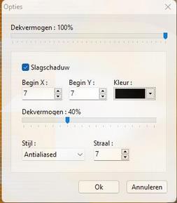 1 2 3 4 5 ************************************ HALLOWEEN 2021 ![]() Gemaakt met PFS X ******************************** Gebruikte filters 8bf: Importeren naar Unlimited: Simple/ Blintz Graphics Plus/ Horizontal Mirror Simple/ Pizza Slice Mirror Graphics Plus/ Vertical Mirror Andere filters 8bf: Simple/ Quick Tile AAA Frames/ Foto Frame *************************************************************** ![]() ************************************* Ik wil Riet bedanken voor het controleren van de les! ************************************************************* Zet onderstaande kleuren in je Aangepaste kleurenpalet: plus de kleur wit ********************************************************** 1. Open een nieuwe afbeelding van650 x 450/ voorgrondkleur. 2. Open de tube Chouchoucats82. 3. Kopieer de tube en plak deze op je werk. 4. Haal de handtekening weg met het gummetje. 5. Aanpassen/ Tint/verzadiging: ![]() 6. Laag/Samenvoegen met vorige laag. 7. Filter 8bf/ Simple/ Quick Tile: ![]() 8. Filter/ Visueel effect/ Gaussiaanse vervaging/ 30. 9. Filter 8bf/ Unlimited/ Simple/ Blintz: ![]() 10. Bewerken/ Herhalen Filter Unlimited: ![]() 11. Filter 8bf/ Unlimited/ Graphics Plus/ Horizontal Mirror: ![]() 12. Filter 8bf/ Unlimited/ Simple/ Pizza Slice Mirror: ![]() 13. Filter/ Relief/ Relief. 14. Laag/ Nieuw/ Leeg/ wit. 15. Filter/ PhotoMask: ![]() 16. Zet de Mengmodus op Soft light. 17. Dubbelklik op de laag/ Slagschaduw: ![]() 18. Klik op de achtergrond. 19. Open opnieuw de tube Chouchoucats82. 20. Kopieer de tube en plak deze op je werk en haal de handtekening weg met het gummetje. 21. Zet de Dekking op 80. 22. Schuif de tube met de pijltjestoets naar rechts, zie voorbeeld. 23. Voeg alle lagen samen. 24. Open de tube fetes_halloween16_tine. 25. Verwijder de handtekening met het gummetje. 26. Kopieer de tube en plak deze op de bovenste laag van je werk. 27. Klik rechts op de laag/ Handmatig instellen/ Hoogte = 200. 28. Plaats de tube rechts boven op je werk, zie voorbeeld. 29. Dubbelklik op de laag/ Slagschaduw: ![]() 30. Open de tube texte. 31. Kopieer de tube en plak deze op je werk. 32. Plaats de tekst rechts onder op je werk. 33. Herhaal de schaduw van punt 29. 34. Laag/ Alle lagen samenvoegen. 35. Bewerken/ Patroon selecteren. 36. Afbeelding/ Kader toevoegen: breedte 2/ voorgrondkleur breedte 2/ achtergrondkleur breedte 2/ voorgrondkleur breedte 45/ kleur wit 37. Selecteer met de toverstaf het witte kader. 38. Bewerken/ Vullen met patroon. 39. Filter 8bf/ Unlimited/ Graphics Plus/ Horizontal Mirror: ![]() 40. Filter 8bf/ Unlimited/ Graphics Plus/ Vertical Mirror: ![]() 41. Selectie/ Omgekeerd. 42. Filter/ Stileren/ Toenemende omtrek: ![]() 43. Selectie/ Verbergen. 44. Filter 8bf/ AAA Frames/ Foto Frame: ![]() 45. Open de tube Tube _coeurdelouve_Halloween_Enfant. 46. Kopieer de tube en plak deze op je werk. 47. Haal de handtekening weg met het gummetje. 48. Plaats de tube naar links, zie voorbeeld. 49. Dubbelklik op de laag/ Slagschaduw: ![]() 50. Zet je naam op het werk. 51. Laag/ Alle lagen samenvoegen. 52. Afbeelding/ Kader toevoegen/ breedte 1/ kleur zwart. Veel plezier met het maken van dit door mij vertaalde lesje van Manany. Merci Manany! *************************************** 1 2 3 4 5 | |||||||||||||