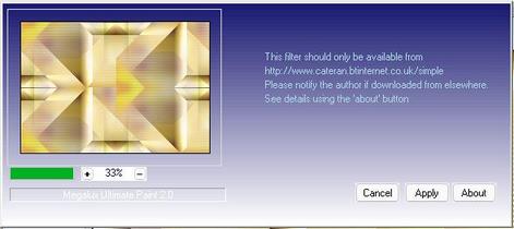 1 2 3 4 5 ************************************ MYLENE ![]() Gemaakt met PFS X ******************************** Gebruikte filters 8bf: Importeren naar Unlimited: VM Instant Art/ Tripolis Buttons & Frames/ 3D Glass Frame 2 Simple/ Pizza Slice Mirror VM Extravaganza/ Transmission Buttons & Frames/ Glass Frame 2 Andere filters 8bf: Simple/ Quick Tile AAA Frames/ Frame Works *************************************************************** ![]() ************************************* Ik wil Riet bedanken voor het controleren van de les! ************************************************************* Zet onderstaande kleuren in je Aangepaste kleurenpalet: ********************************************************** Er zit geen vrouwentube bij de materialen. Die mag je zelf kiezen. 1. Open een nieuwe afbeelding van 650 x 450/ voorgrondkleur. 2. Open de tube Misted_divers8. 3. Wis de handtekening weg met het gummetje. 4. Kopieer de tube en plak deze op je werk. 5. Zet de tube even opzij, die gebruiken we later nog een keer. 6. Laag/ Handmatig instellen/ haal het vinkje weg bij Hoogte/breedte verhouding/ Automatisch midden/ Breedte 650 en Hoogte 450. 7. Voeg de laag samen met de achtergrond. 8. Filter 8bf/ Simple/ Quick Tile: ![]() 9. Filter/ Visueel effect/ Gaussiaanse vervaging/ 30. 10. Filter 8bf/ Unlimited/ VM Instant Art/ Tripolis: ![]() 11. Filter 8bf/ Unlimited/ Buttons & Frames/ 3D Glass Frame 2: ![]() 12. Filter 8bf/ Unlimited/ Simple/ Pizza Slice Mirror: ![]() 13. Laag/ Dupliceren. 14. Selectie/ Selectievorm laden/ Laad de vorm S.Mylene01. 15. Klik op de Deletetoets. 16. Selectie/ Selecteer laag. 17. Filter 8bf/ Unlimited/ VM Extravaganza/ Transmission: ![]() 18. Filter/ PhotoMask: ![]() 19. Selectie/ Verbergen. 20. Laag/ Alle lagen samenvoegen. 21. Filter 8bf/ Simple/ Quick Tile: ![]() 22. Laag/ Dupliceren. 23. Selectie/ Selectievorm laden/ laad de vorm S.Mylene02. 24. Klik op de Deletetoets. 25. Open de opzij gezette tube Misted_divers8. 26. Afbeelding/ Afmetingen afbeelding/ Hoogte = 450. 27. Kopieer de tube en plak deze op je werk. 28. Plaats de tube zoals je ziet op het voorbeeld: ![]() 29. Selectie/ Selectie tonen. 30. Klik op de Deletetoets. 31. Selectie/ Omgekeerd. 32. Laag/ samenvoegen met vorige laag. 33. Selectie/ Selectie tonen. 34. Filter 8bf/ Unlimited/ Buttons & Frames/ Glass Frame 2: ![]() 35. Laag/ Handmatig instellen/ X = 256 en Y = 16/ Breedte = 350. 36. Filter/ Stileren/ Toenemende omtrek: ![]() 37. Laag/ Dupliceren. 38. Open de tube Glass Mylene01. 39. Plaats nu de gedupliceerde laag van punt 37 achter het glas links onder, zoals je ziet op het voorbeeld: 40. Laag/ Alle lagen samenvoegen. 41. Laag/ Nieuw/ Leeg/ Achtergrondkleur. 42. Selectie/ Selectievorm laden/ laad de vorm S.Mylene03. 43. Klik op de Deletetoets. 44. Selectie/ Selecteer laag. 45. Selectie/ Verkleinen/ 2. 46. Vul de selectie met de voorgrondkleur. 47. Selectie/ Verkleinen/ 5. 48. Vul de selectie met de achtergrondkleur. 49. Selectie/ Verbergen. 50. Filter/ Stileren/ Toenemende omtrek: ![]() 51. Selectie/ Verbergen. 52. Open de tube Glass Mylene02. 53. Kopieer de tube en plak deze op je werk. 54. Voeg alle lagen samen. 55. Bewerken/ Patroon selecteren. 56. Afbeelding/ Kader toevoegen: breedte 2/ voorgrondkleur breedte 2/ achtergrondkleur breedte 2/ voorgrondkleur breedte 45/ kleur wit 57. Selecteer het witte kader met de toverstaf. 58. Bewerken/ Vullen met patroon. 59. Filter/ Visueel effect/ Gaussiaanse vervaging/ 30. 60. Selectie/ Omgekeerd. 61. Filter/ Stileren/ Toenemende omtrek: ![]() 62. Selectie/ Omgekeerd. 63. Selectie/ Verkleinen/ 15. 64. Filter 8bf/ AAA Frames/ Frame Works: ![]() 65. Selectie/ Verbergen. 66. Open de door jou gekozen tube. 67. Plaats de tube naar links. 68. Dubbelklik op de laag/ Slagschaduw: ![]() 69. Zet je naam op het werk. 70. Voeg alle lagen samen. 71. Afbeelding/ Kader toevoegen/ Breedte 1/ kleur zwart. Veel plezier met het maken van dit door mij vertaalde lesje van Manany. Merci Manany! *************************************** 1 2 3 4 5 | |||||||||||||