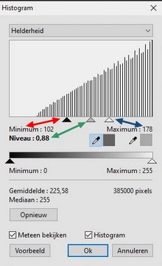 ************************************** CELINE ![]() Gemaakt met PFS X ******************************** Gebruikte filters 8bf: AAA Frames/ Foto Frame *********************************************************************** ![]() ************************** Ik wil Riet bedanken voor het controleren van de les! **************************************************************** Zet onderstaande kleuren in je Aangepaste kleurenpalet: ![]() ******************************************************************* 1. Open een nieuwe afbeelding van 700 x 550/ wit. 2. Filter/ Plugin/ Gradient/ kleur 1 en 3 = voorgrondkleur en kleur 2 = achtergrondkleur: ![]() 3. Filter/ Visueel effect/ Gaussiaanse vervaging/ 30. 4. Herhaal dit twee keer. 5. Klik rechts op de achtergrond/ Dupliceren. 6. Klik nogmaals rechts op de achtergrond/ Klik op Zichtbaar. 7. Klik op de laag. 8. Filter/ PhotoMask: ![]() 9. Filter/ Textuur/ Geschept papier. 10. Klik op het gum gereedschap en gum de middelste ovaal weg/ vergroot de afbeelding om de randen goed te kunnen zien: ![]() 11. Klik rechts op de achtergrond, klik op Zichtbaar/ blijf op de achtergrond. 12. Aanpassen/ Histogram: ![]() 13. Klik op laag 1. 14. Aanpassen/ Gammacorrectie/ niveau = 0,36. 15. Open de tube PPT14-)08Ice_Princess. 16. Kopieer de tube en plak deze op je werk. 17. Handmatig instellen: X = 195 en Y = 113/ Breedte = 300. 18. Voeg de laag samen met de achtergrond. 19. Afbeelding/ Kader toevoegen/ Breedte 10/ RGB kleuren: 20. Selecteer het kader met de toverstaf. 21. Filter/ Textuur/ Oud canvas. 22. Zet je naam op het werk en voeg de lagen samen. Veel plezier met dit door mij vertaalde lesje van Papy. Merci Papy. *************************************** 1 2 3 | |||||||||||||