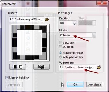 ************************************** Julie ![]() Gemaakt met PF 7 ********************************************* ![]() ****************************************** Met dank aan Riet en Joke voor het controleren van de les. ********************************************************** Zet onderstaande kleuren in je Aangepaste kleurenpalet: ![]() **************************************** 1. Oepn een nieuwe afbeelding van 700 x 550/ wit. 2. Filter/ Plugin/ Gradient: Kleuren 1 en 3 = voorgrondkleur en kleur 2 = achtergrondkleur. ![]() 3. Filter/ Visueel effect/ Gaussiaanse vervaging/ 30. 4. Herhaal dit 2 x. 5. Filter/ PhotoMask: ![]() 6. Filter/ Textuur/ Overig: ![]() 7. Laag/ Nieuw/ Leeg/ achtergrondkleur. 8. Filter/ PhotoMask: ![]() 9. Selecteer met de toverstaf de middelste rechthoek. 10. Bewerken/ Knippen. 11. Selectie/ Vorm kopiëren. 12. Open de tube PPT30-08FacePearls. 13. Kopieer de tube en plak deze op de achtergrond. 14. Handmatig instellen: X = 168 en Y = 91/ Breedte = 388. 15. Selectie/ Vorm plakken. 16. Filter/ Stileren/ Contour 3D: ![]() 17. Open de tube deco. 18. Kopieer de tube en plak deze op de bovenste laag. 19. Filter kleuren/ Gekleurde laag/ Dekvermogen 100/ kleur R= 216- G= 96 en B= 132. 20. Handmatig instellen: X en Y = 12. 21. Dubbeklik op de laag/ Slagschaduw: ![]() 22. Zet je naam op het werk en voeg de lagen samen. Veel plezier met dit door mij vertaalde lesje van Papy. Merci Papy. *************************************** 1 2 3 | |||||||||||||