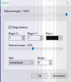 ************************************** JULIETTE ![]() Gemaakt met PFS X 10 ******************************** Gebruikte filters 8bf: Importeren naar Unlimited: Graphics Plus/ Emboss Andere filters 8bf: Xero/ Porcelain *********************************************************************** ![]() ************************** Ik wil Riet bedanken voor het controleren van de les! **************************************************************** Zet onderstaande kleuren in je Aangepaste kleurenpalet: ![]() ******************************************************************* 1. Open de afbeelding image-fond. 2. Afbeelding/ dupliceren/ Sluit het origineel. 3. Filter/ PhotoMask: ![]() 4. Filter 8bf/ Unlimited/ Graphics Plus/ Emboss: ![]() 5. Open tube_deco. 6. Afbeelding/ Afmetingen afbeelding/ Hoogte = 650. 7. Kopieer de tube en plak deze op je werk. 8. Selectie/ Selecteer laag. 9. Filter/ Kleuren/ Verloop: ![]() 10. Dubbelklik op de laag/ Slagschaduw: ![]() 11. Laag/ Samenvoegen met vorige laag. 12. Open tube _dansuese. 13. Kopieer de tube en plak deze op je werk. 14. Handmatig instellen: X = 46 en Y = 180. 15. Aanpassen/ Tint/verzadiging/ Tint op -20. 16. Filter 8bf/ Xero/ Porcelain: ![]() 17. Voeg de lagen samen. 18. Open tube_étoile. 19. Kopieer de tube en plak deze op je werk. 20. Handmatig instellen: X = -3 en Y = 3. 21. Voeg de lagen samen. 22. Aan de onderkant van de afbeelding zit een kleine fout, die willen we er vandaan hebben. 23. Selectie/ Alles selecteren. 24. Schuif de selectie boven de fout: ![]() 25. Afbeelding/ Bijsnijden. 26. Afbeelding/ Kader toevoegen: Breedte 2/ voorgrondkleur Breedte 15/ achtergrondkleur Breedte 2/ voorgrondkleur 27. Selectyeer met de toverstaf het middelste kader. 28. Filter/ Plugin/ Gradient: kleuren 1, 3 en 5 = voorgrondkleur/ kleuren 2 en 4 = achtergrondkleur: ![]() 29. Zet je naam op het werk en voeg de lagen samen. Veel plezier met dit door mij vertaalde lesje van Papy. Merci Papy. *************************************** 1 2 3 | |||||||||||||